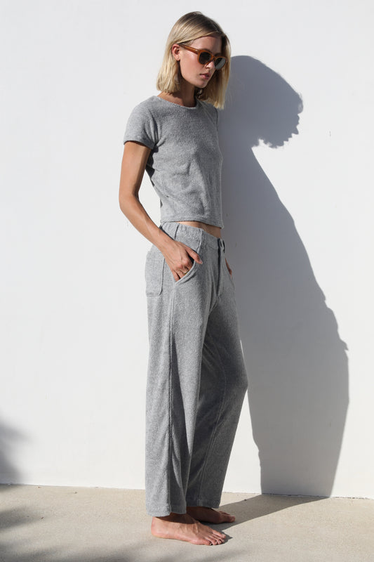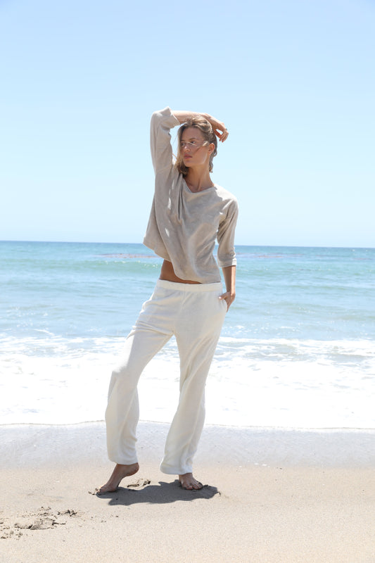 Long Sleeve Wrap Top - Thin Shaved Terry
