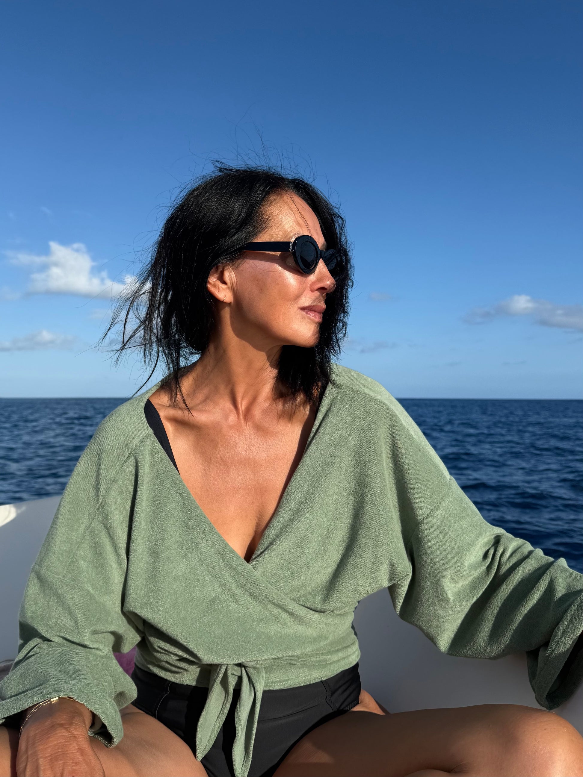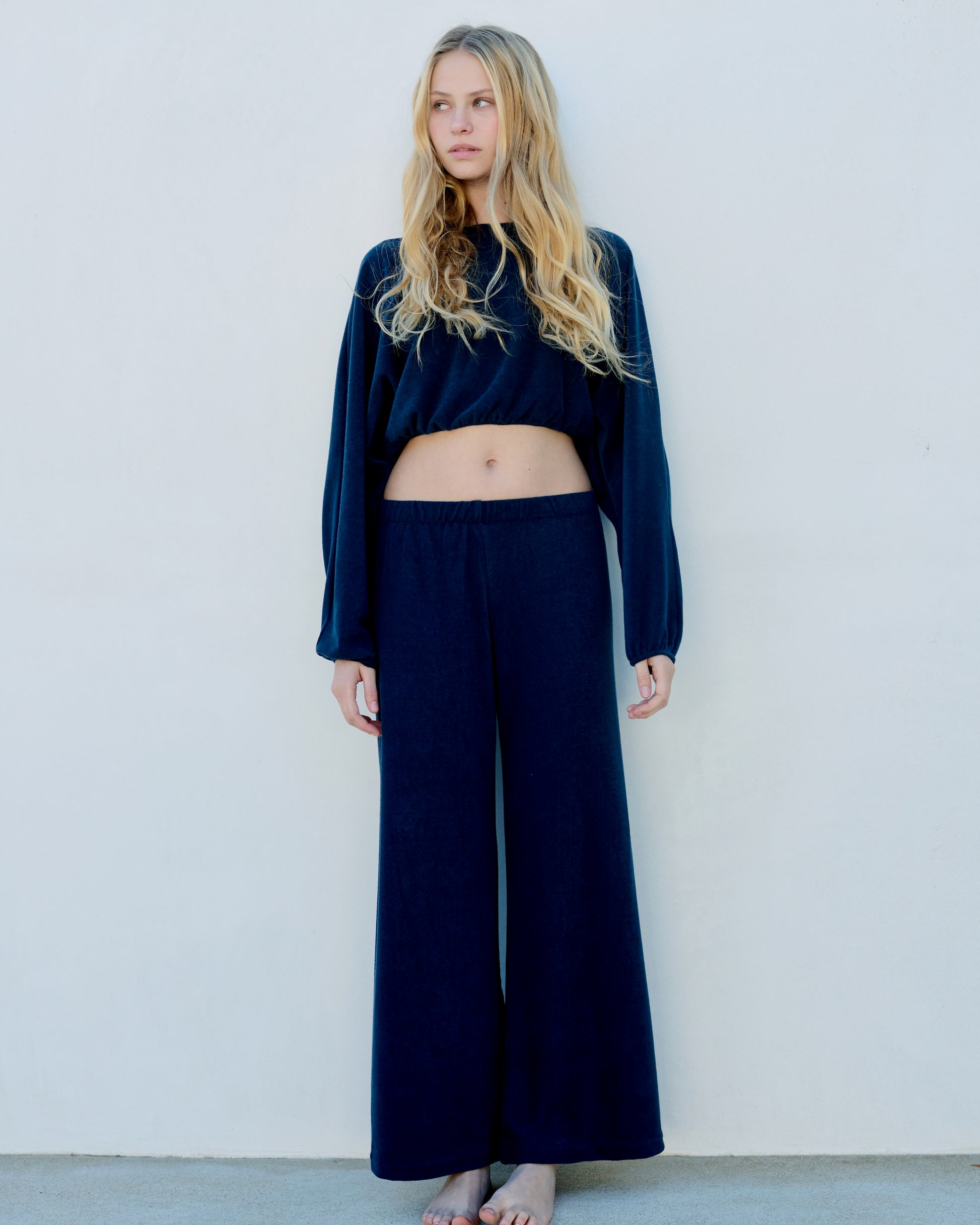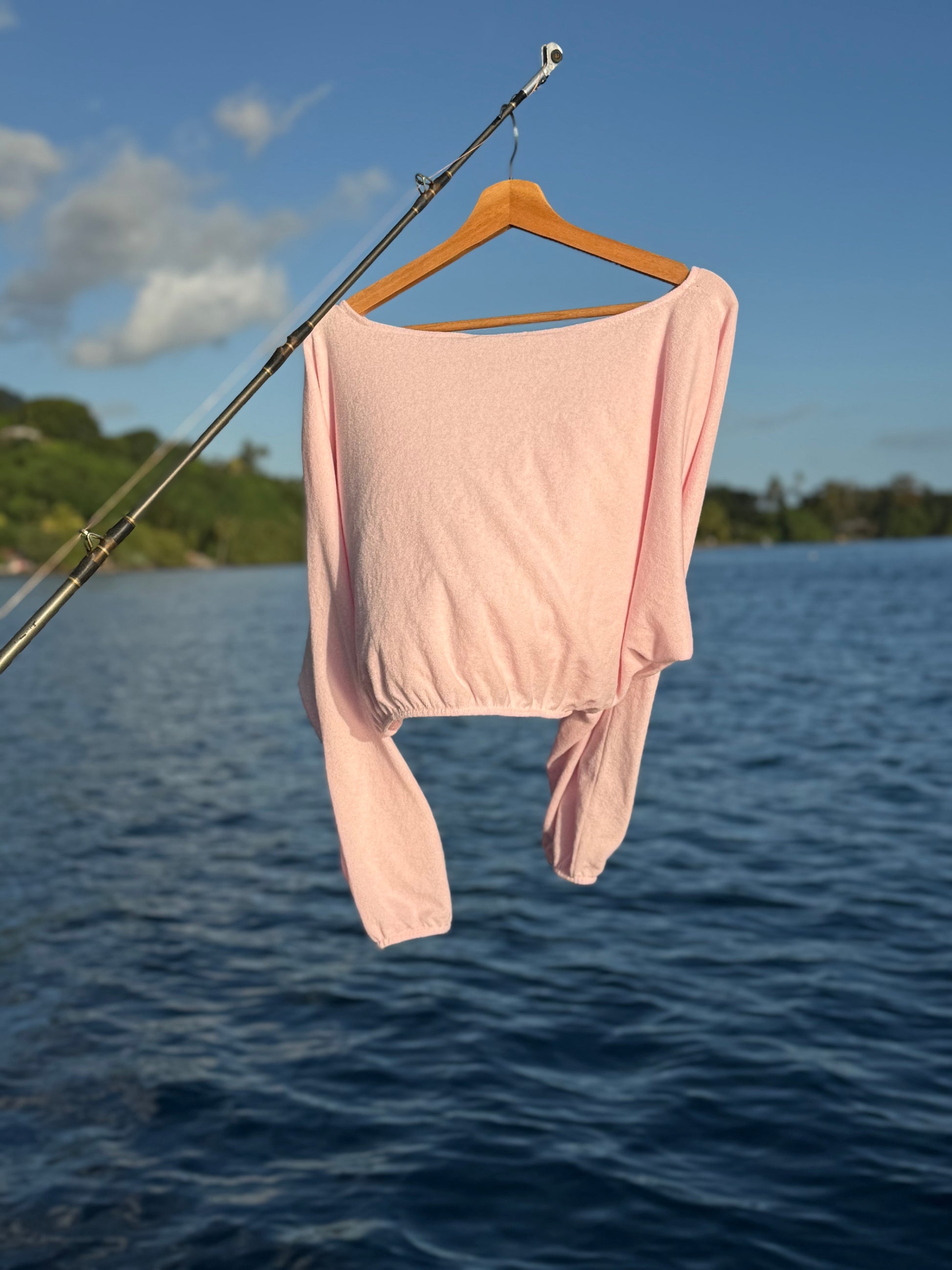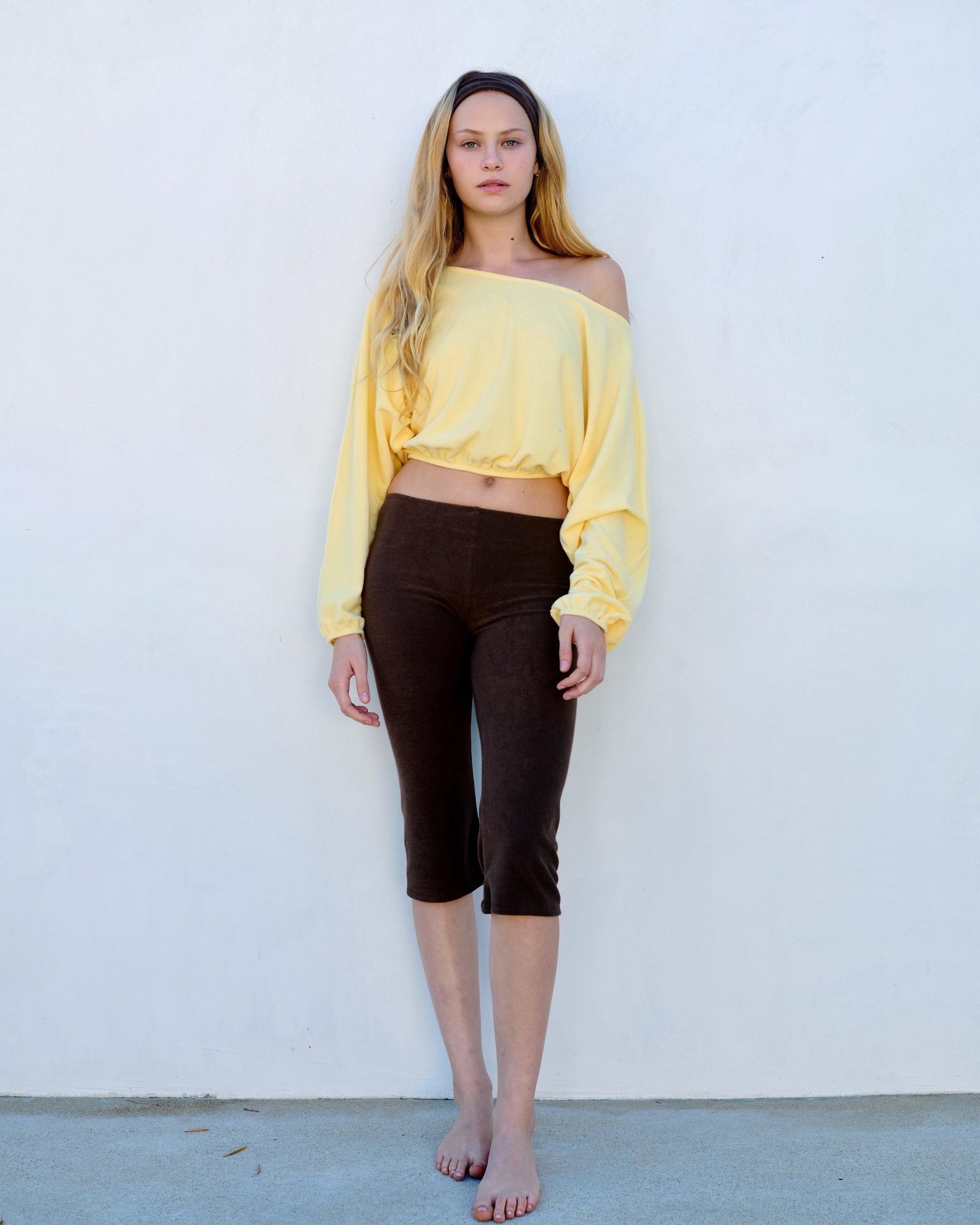 Cropped Top with an elastic waste and balloon arm sleeve.