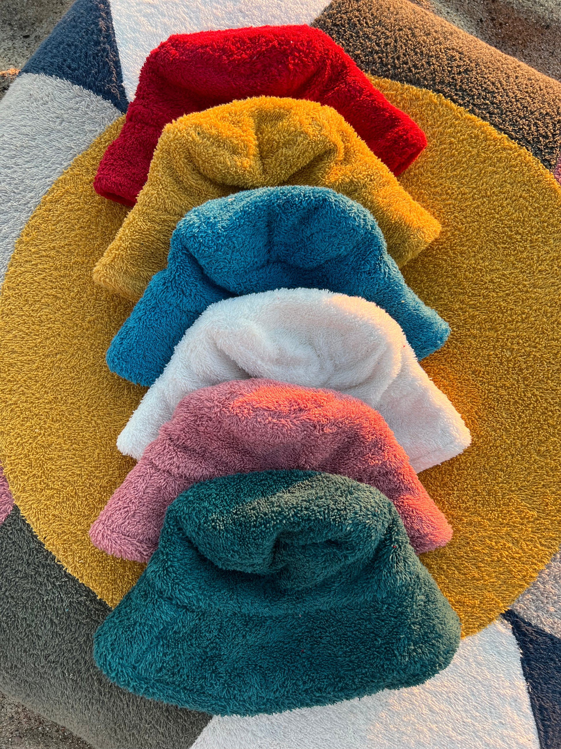 A shrunken version of the adult Simone Fan Collection Staple. This is a kid's version of the classic bucket hat in terry