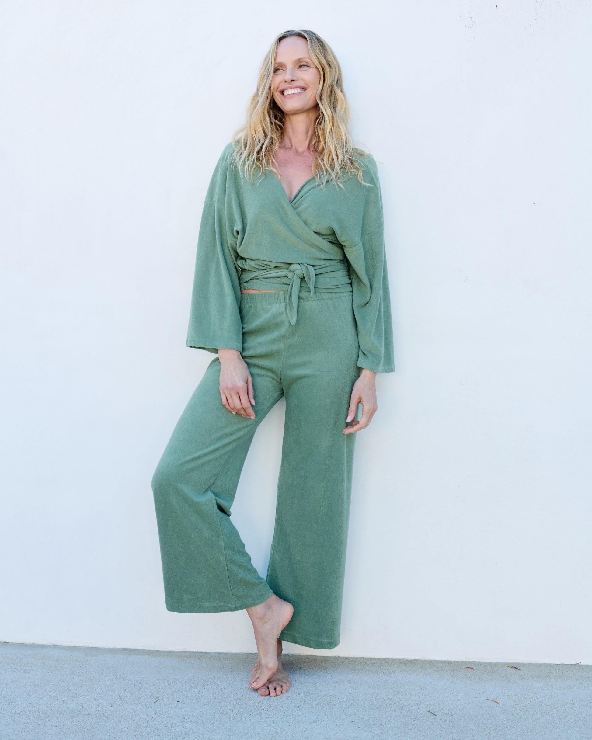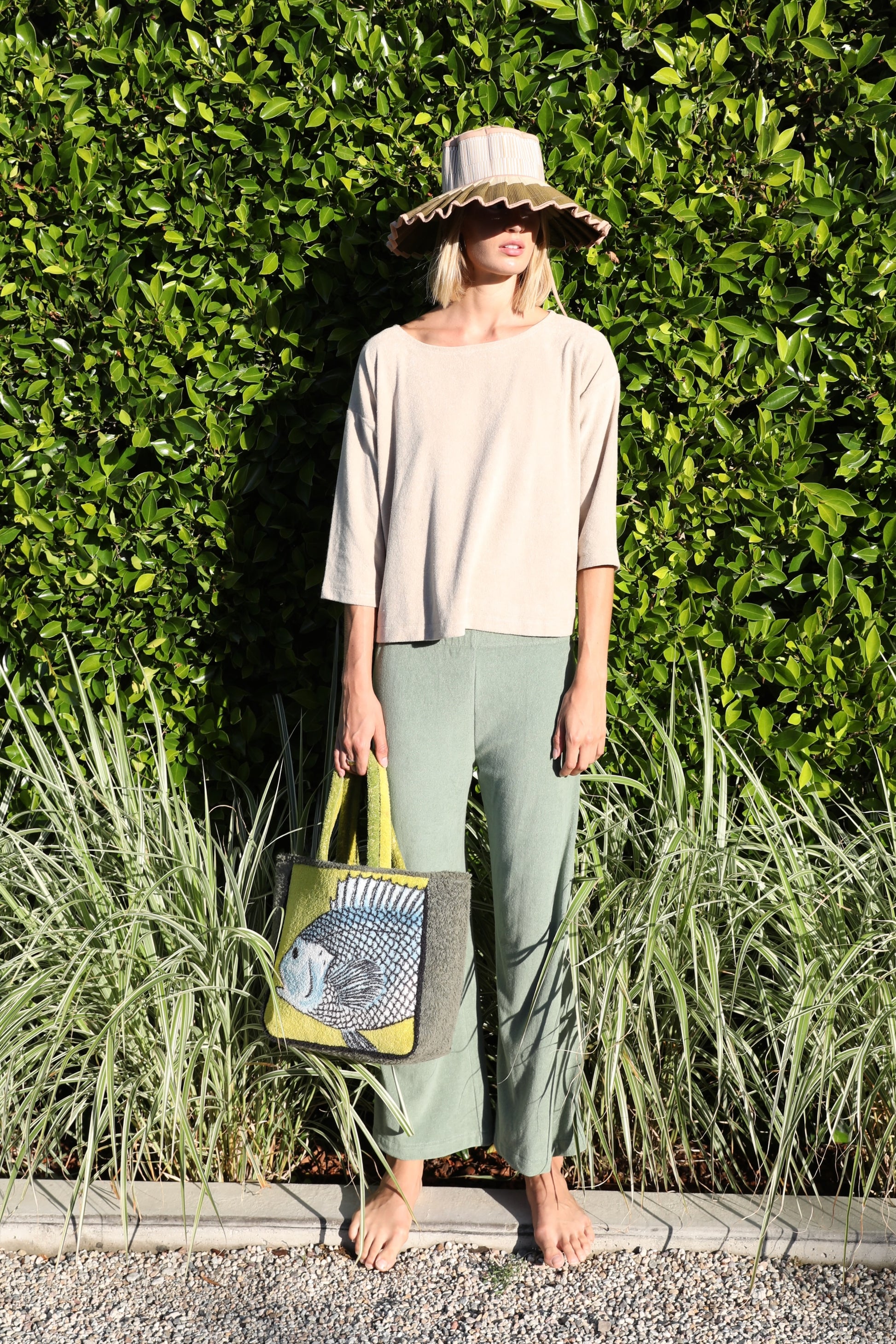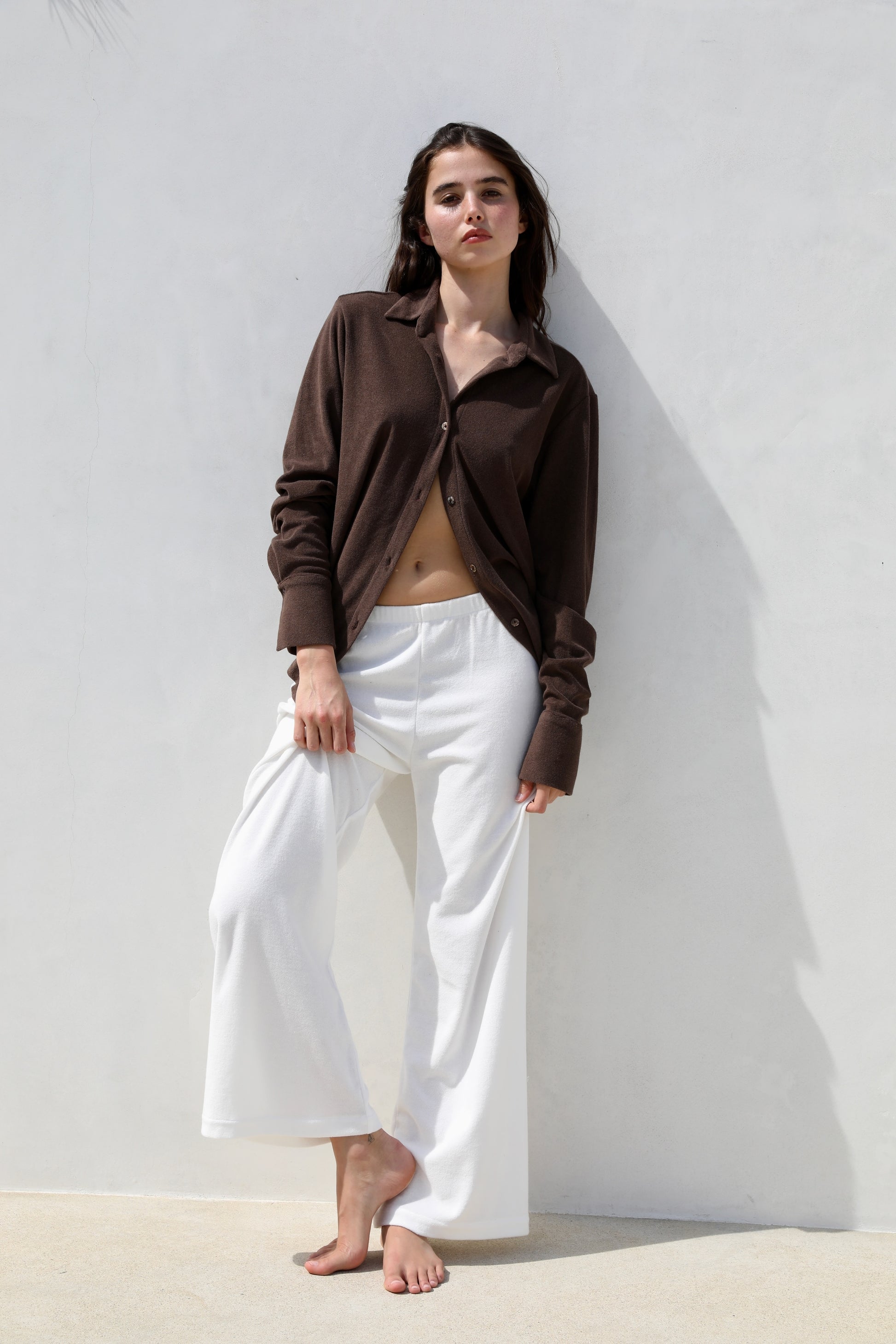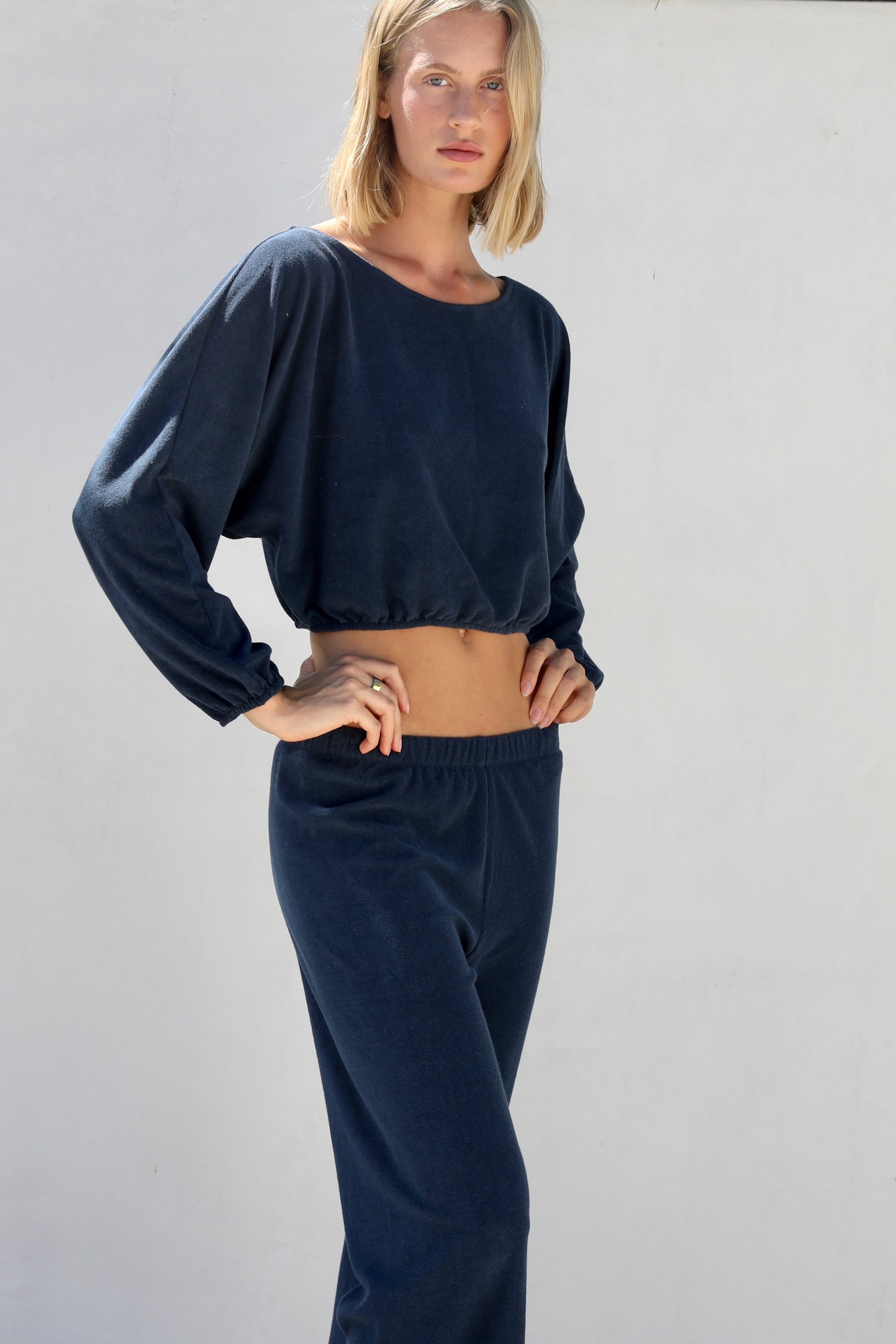 Our best selling Pull on terry pants in thin terry. Comfortable elasticized waist, sits mid waist with a relaxed leg in a new thin terry fabric 80% Japanese Cotton 20% recycled polyester.
