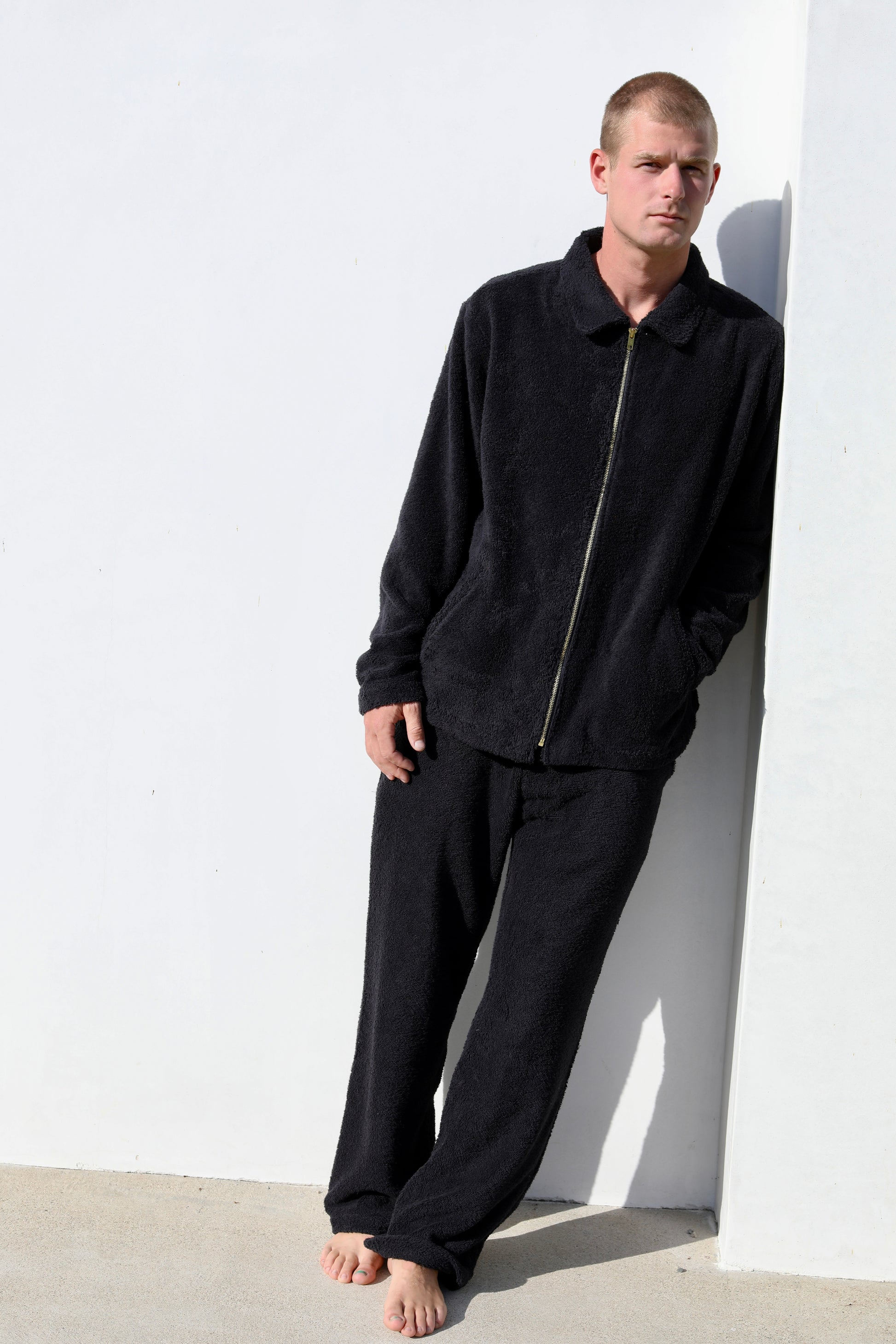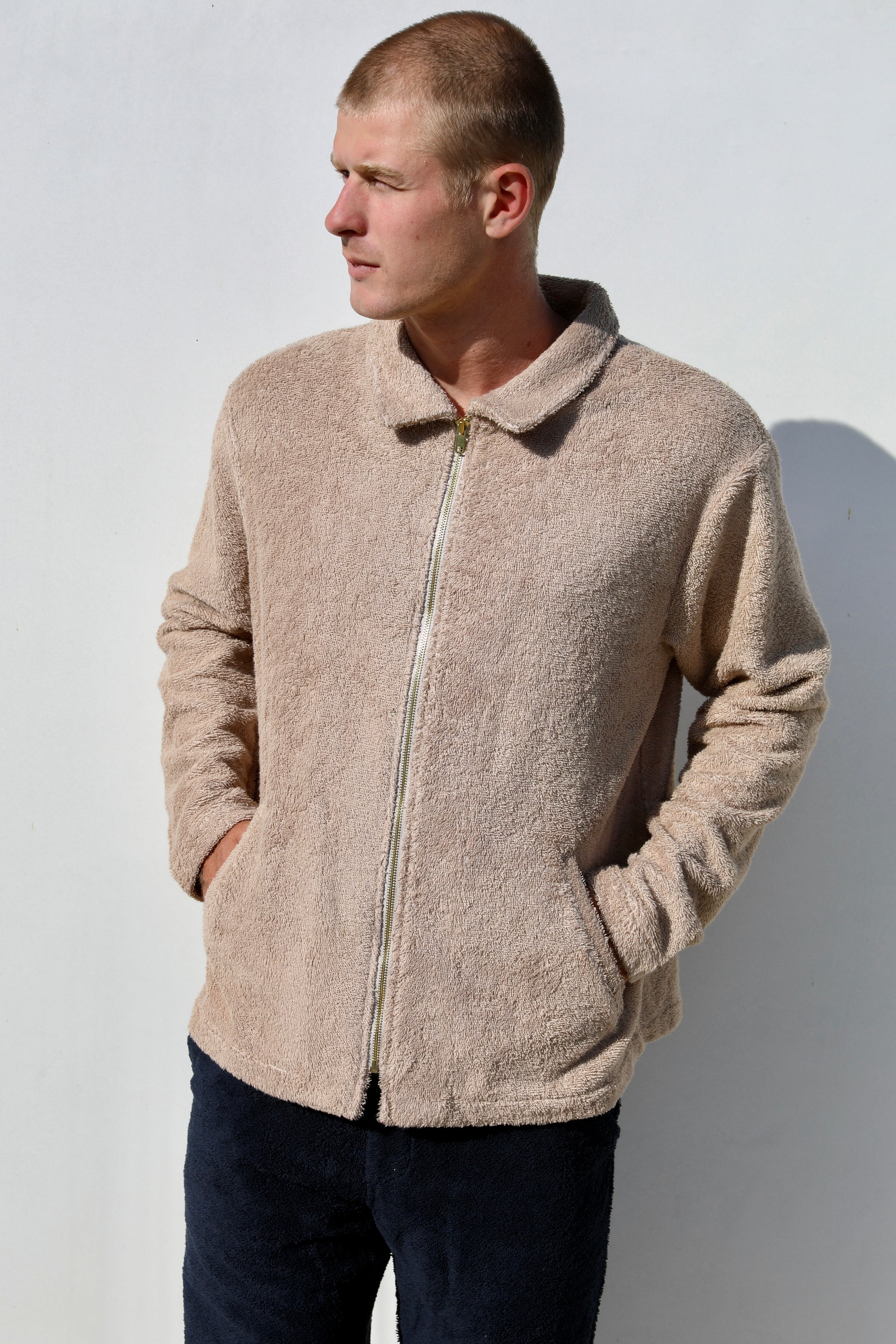 Unisex Zippered Terry Long arm Jacket with collar and two side pockets.