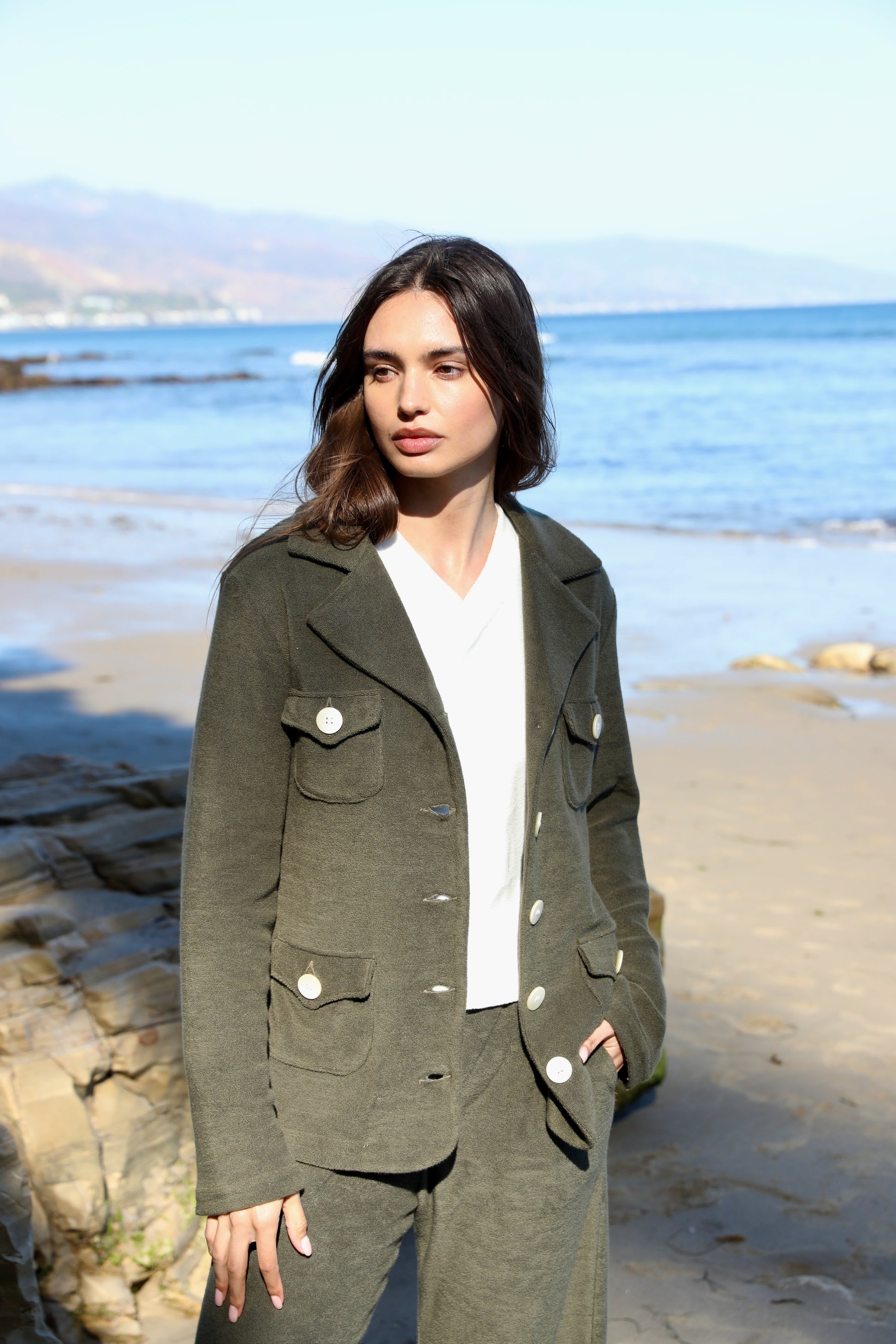 The V neck in 100% Japanese Cotton Terry